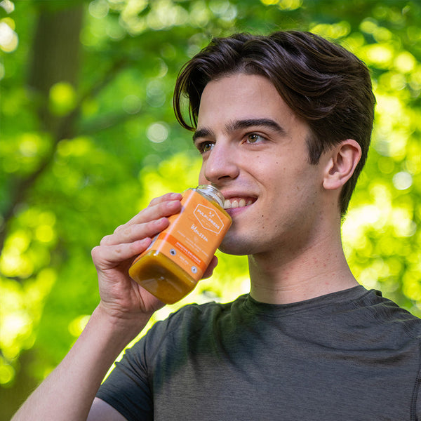 Our juice bottles are made from 100% PET and BPA free plastic. We choose plastic bottles over glass to achieve maximum shelf stability and minimize the chances of spoilage and food waste through high-pressure processing. Plastic also provides our customers with a more durable and affordable experience for personal shipping options.