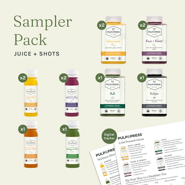 Stay hydrated with our delicious cold-pressed juice. Unlike traditional juicing methods, cold pressing preserves the natural juice without heat or oxidation. This results in the purest, most nutrient-dense juice that you can get your hands on. Our flavourful fruit and vegetable juices have no added preservatives, colours or flavours, and are designed to support immunity and boost energy. Whether you’re looking for a quick morning pick-me-up or a tasty way to increase your daily nutrients, Pulp and Press has you covered.