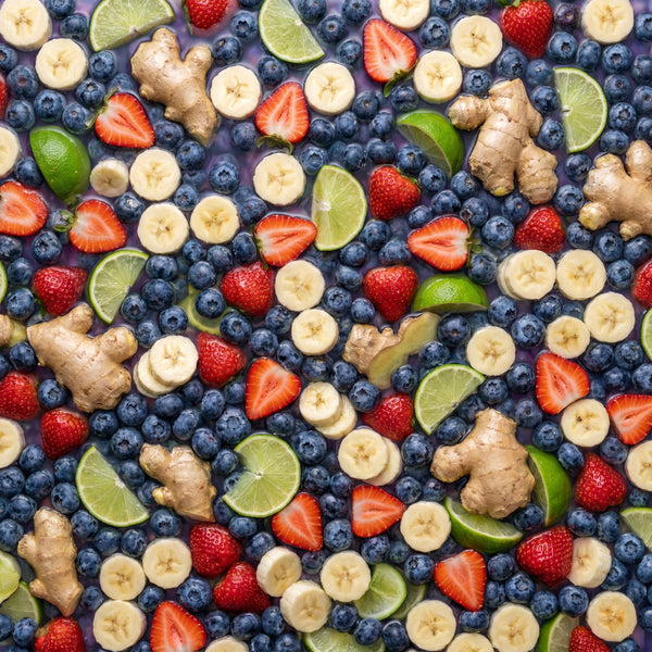 Blueberry, Strawberry, Banana, Lime, Ginger, Chia