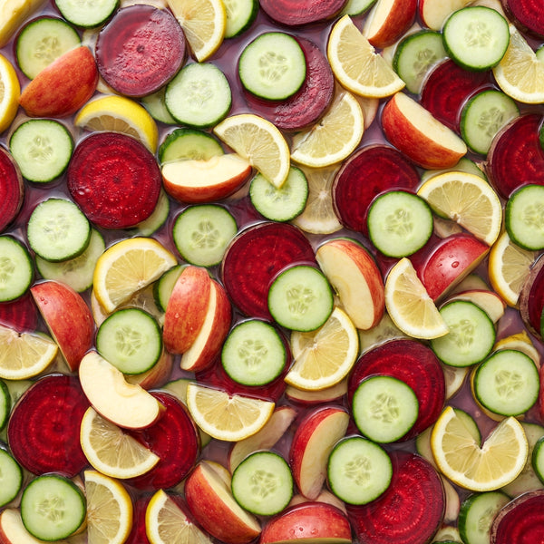 *Cold pressed juice blend (*apple, *beet, *cucumber, *lemon).